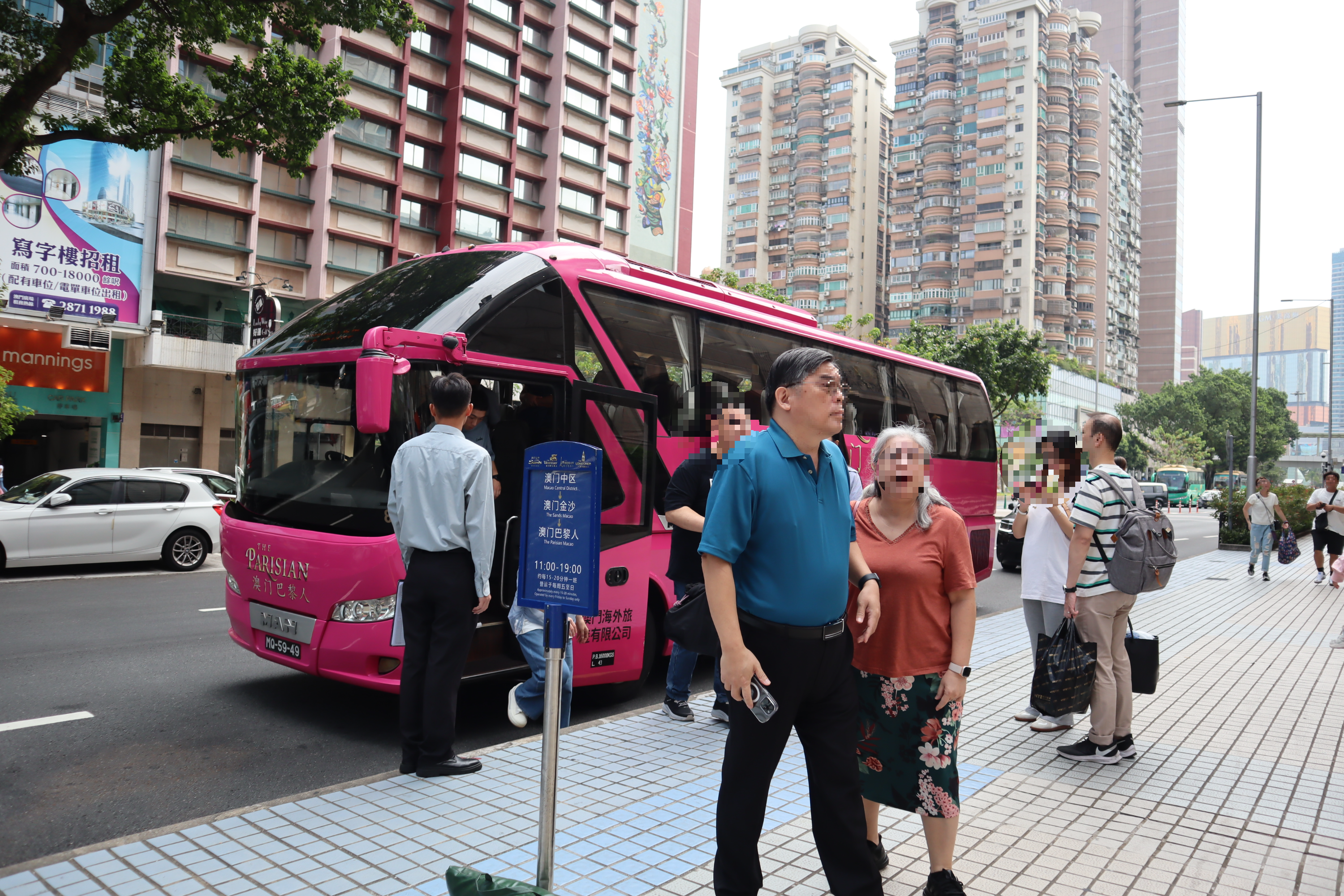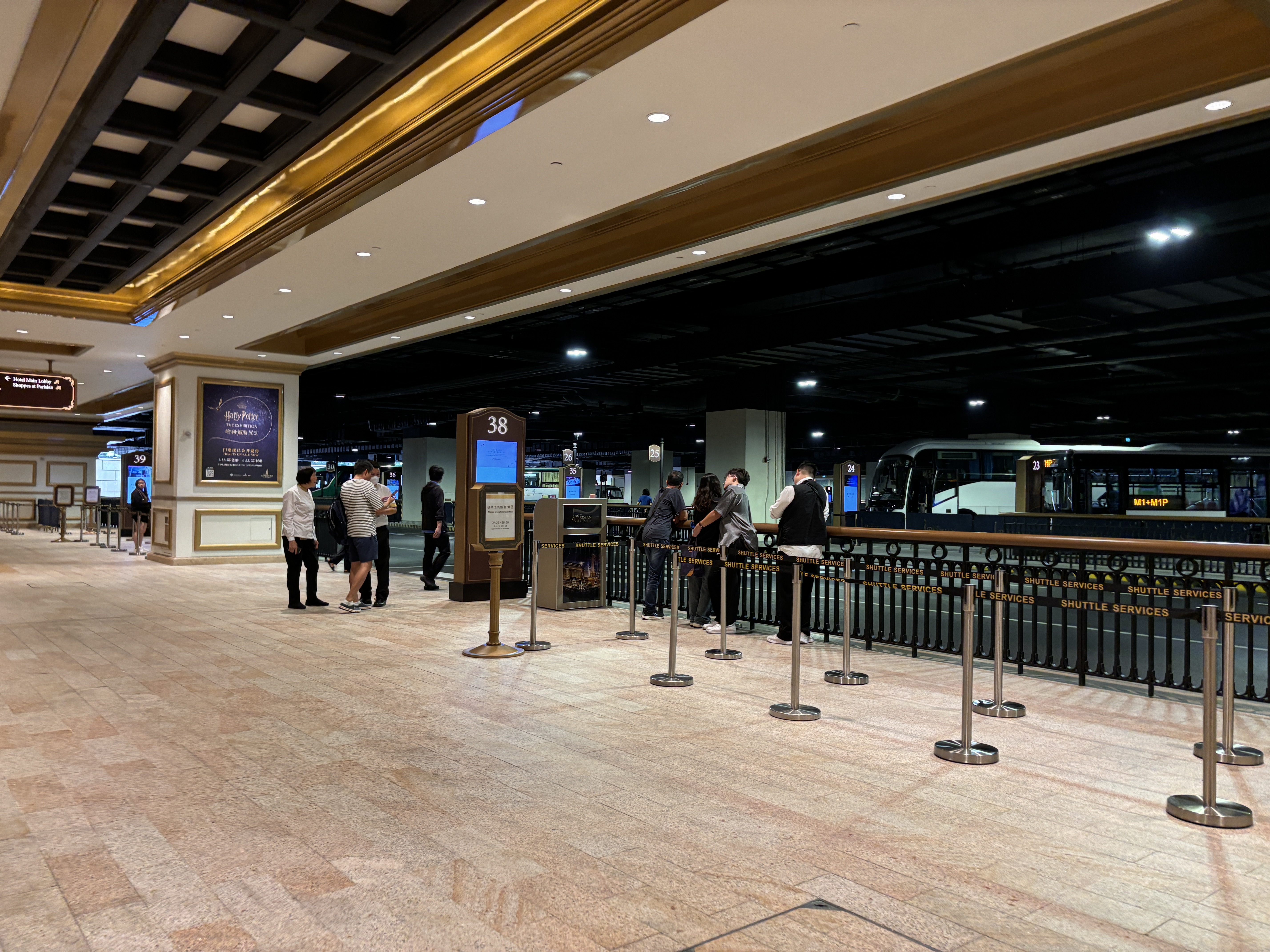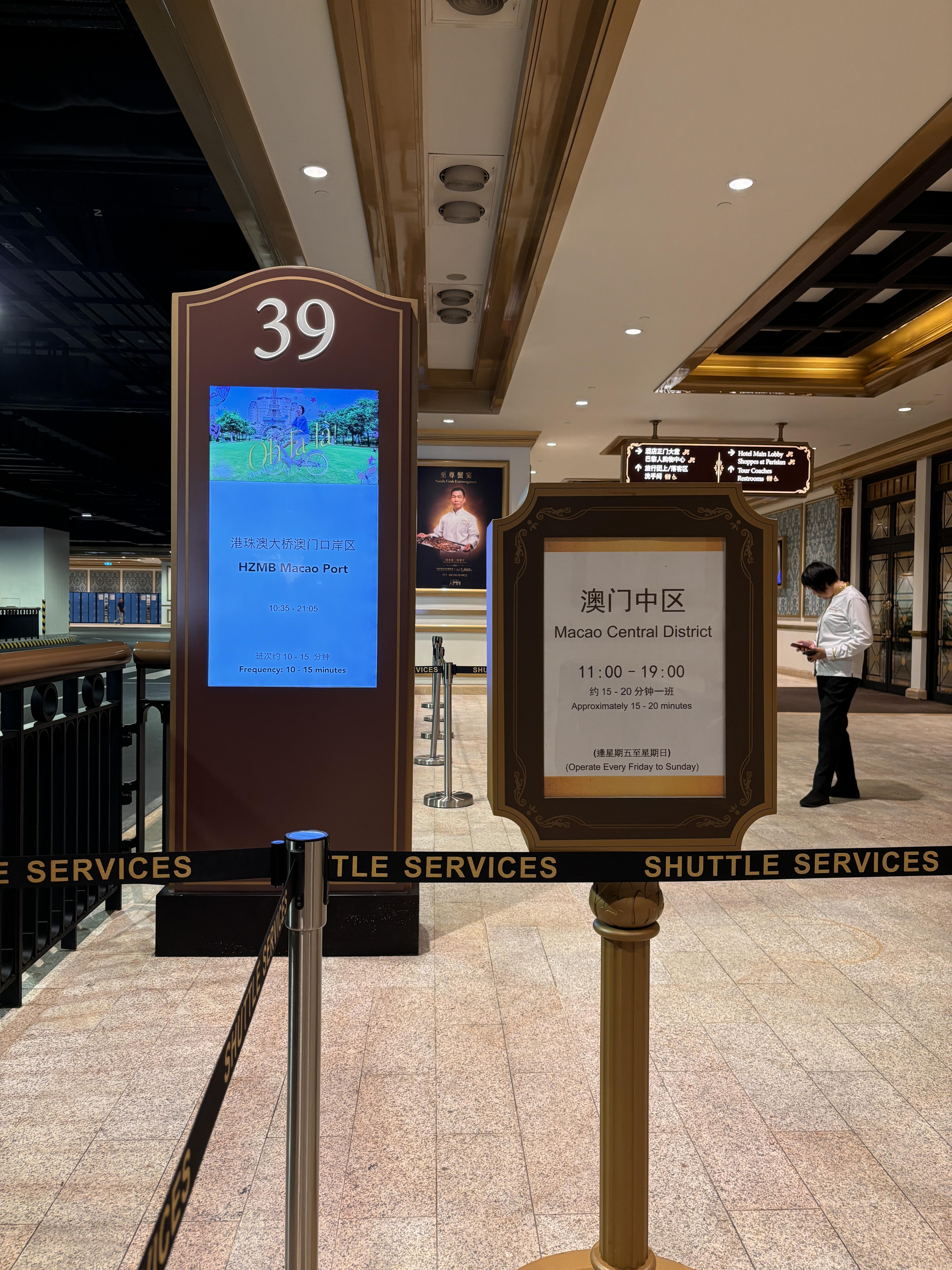 마카오 파리지앵 호텔 로비에서 한 층 더 내려가면, 셔틀버스 / 버스정류장이 위치해 있다. 호텔의 셔틀버스가 아니더라도 일반 버스도 이용이 가능하다.