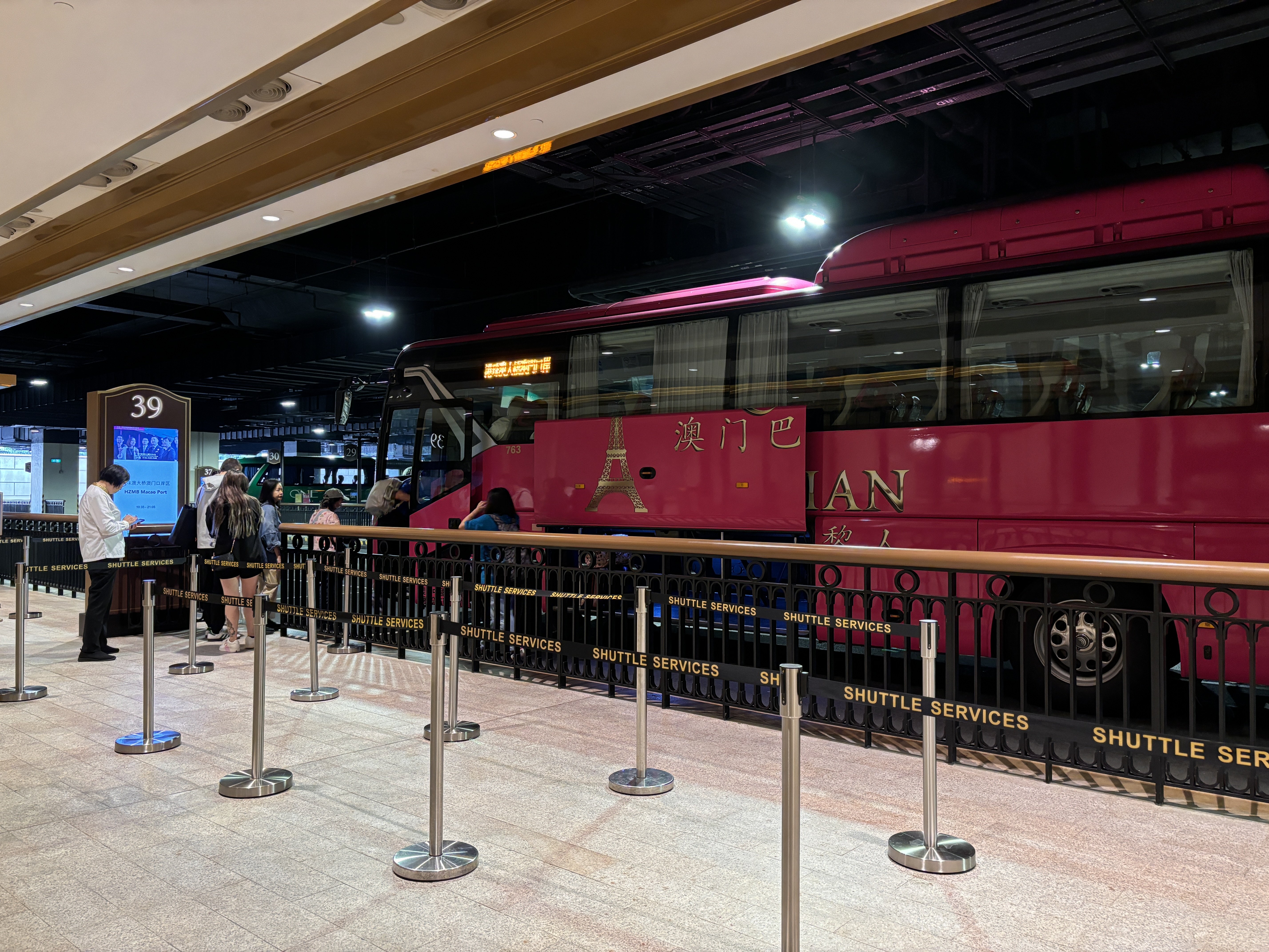 마카오 파리지앵 무료셔틀을 이용하기 위해서는 39번 이라고 쓰여져 있는 곳에 서있으면 된다.