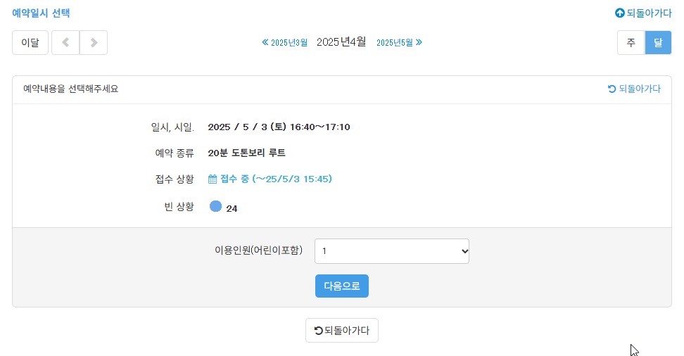 - 예약 방식: 당일 현장 선착순 예약만 가능. 인터넷이나 전화 예약은 불가능하므로, 원하는 시간대에 탑승하려면 일찍 도착하는 것이 좋다.