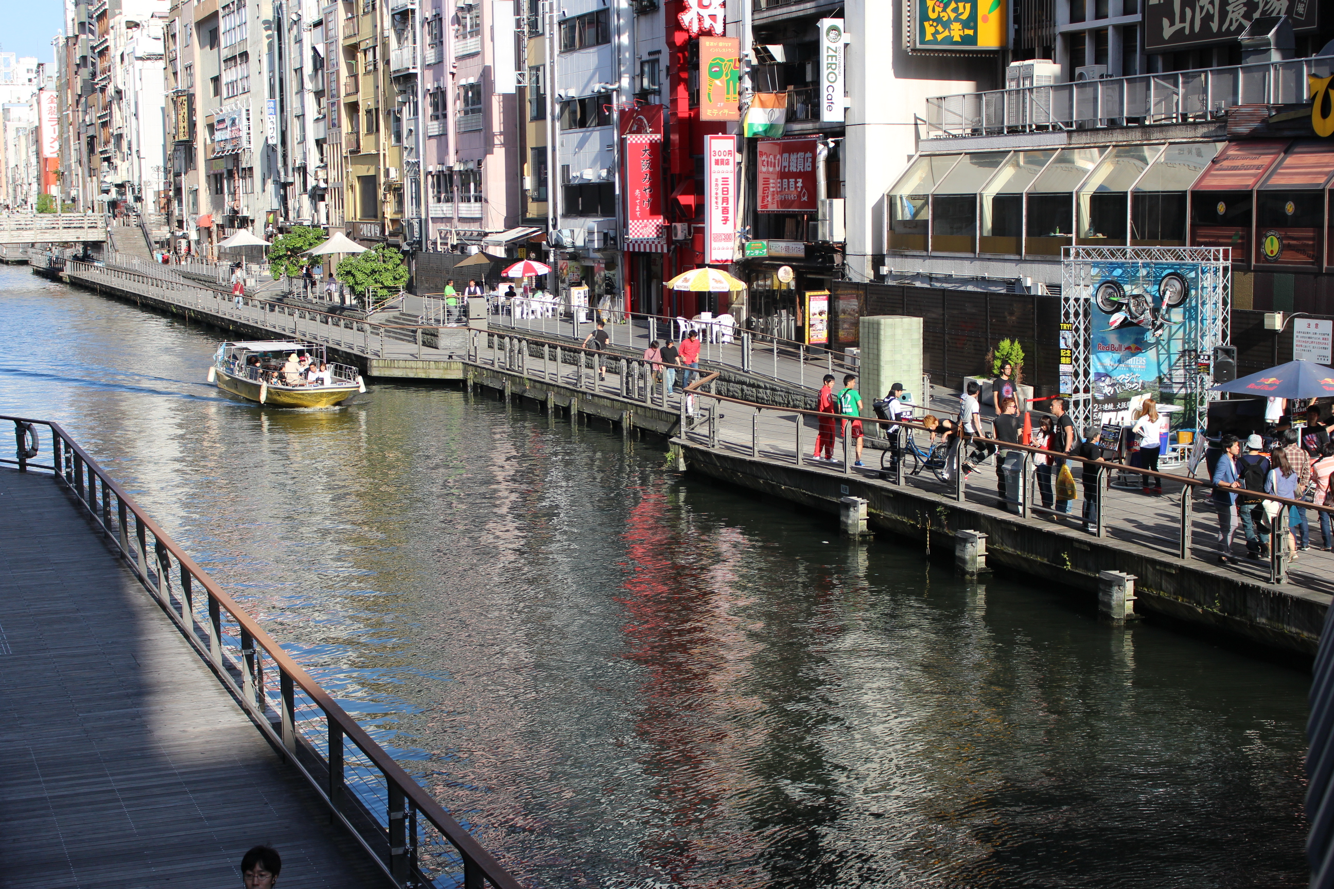 도톤보리강 양쪽의 네온사인과 간판 불빛이 환하게 켜지면서, 진짜 오사카다운 화려한 분위기를 만끽할 수 있는데다, 강물에 비친 불빛들이 반짝이기 때문에 사진 찍었을 때도 매우 예쁨.