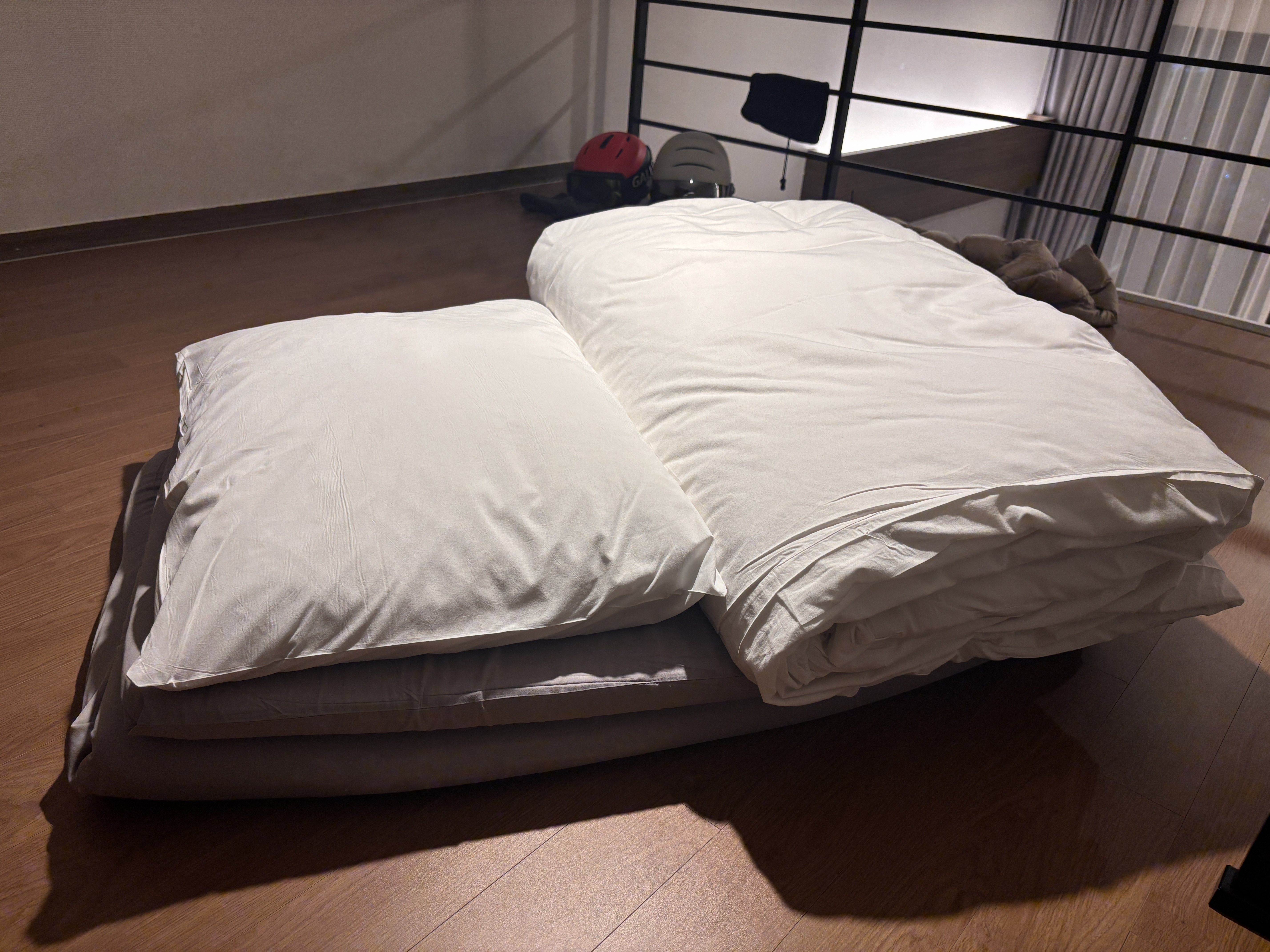 한참 겨울 시즌에는 다락방? 바닥이 온돌이 아니기 때문에 그냥 누워 있기에는 춥고, 뭔가를 깔아야 해서 이불은 필수.