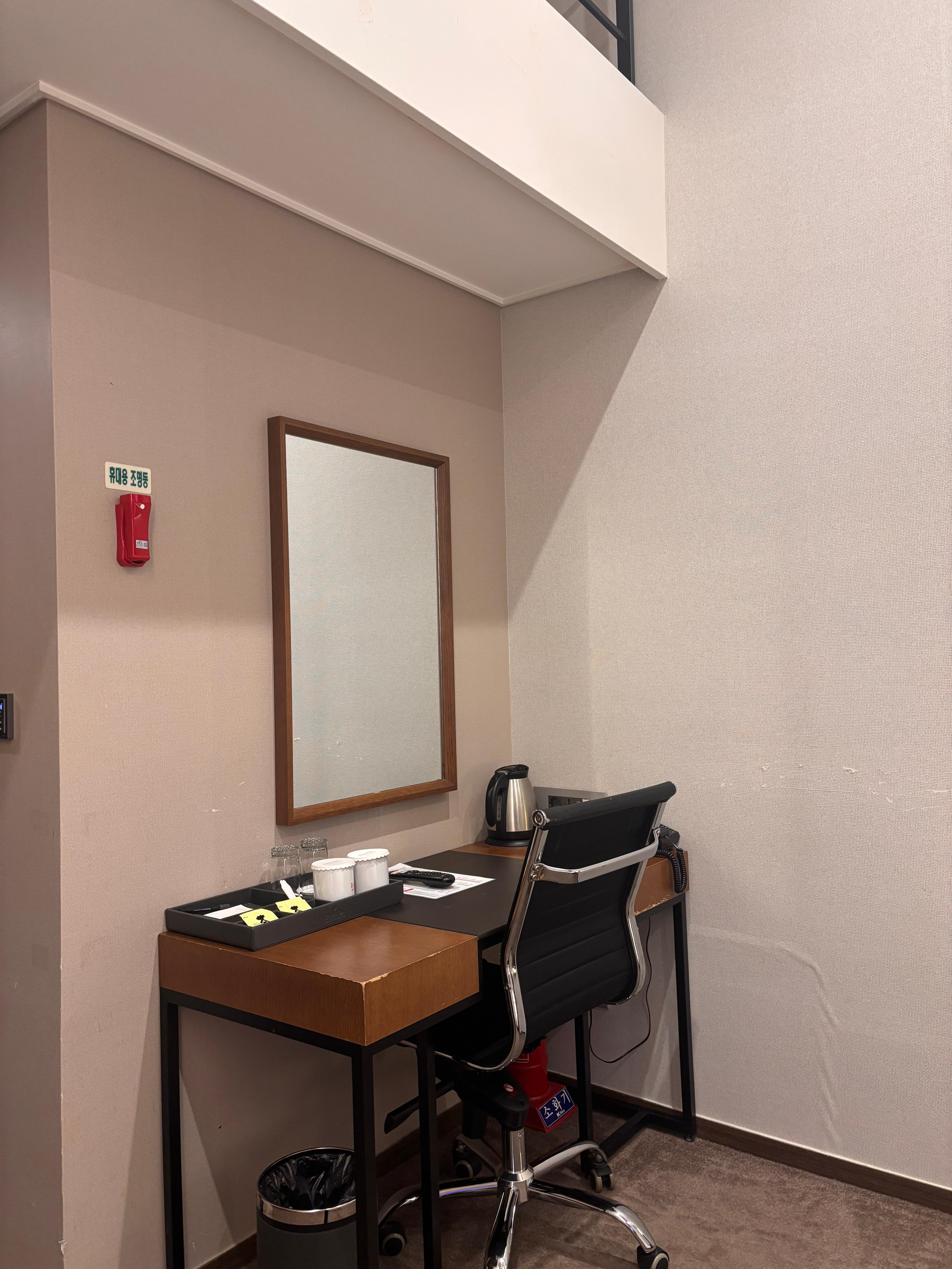 작지만, 테이블과 티, 그리고 전기포트가 구비되어 있다.