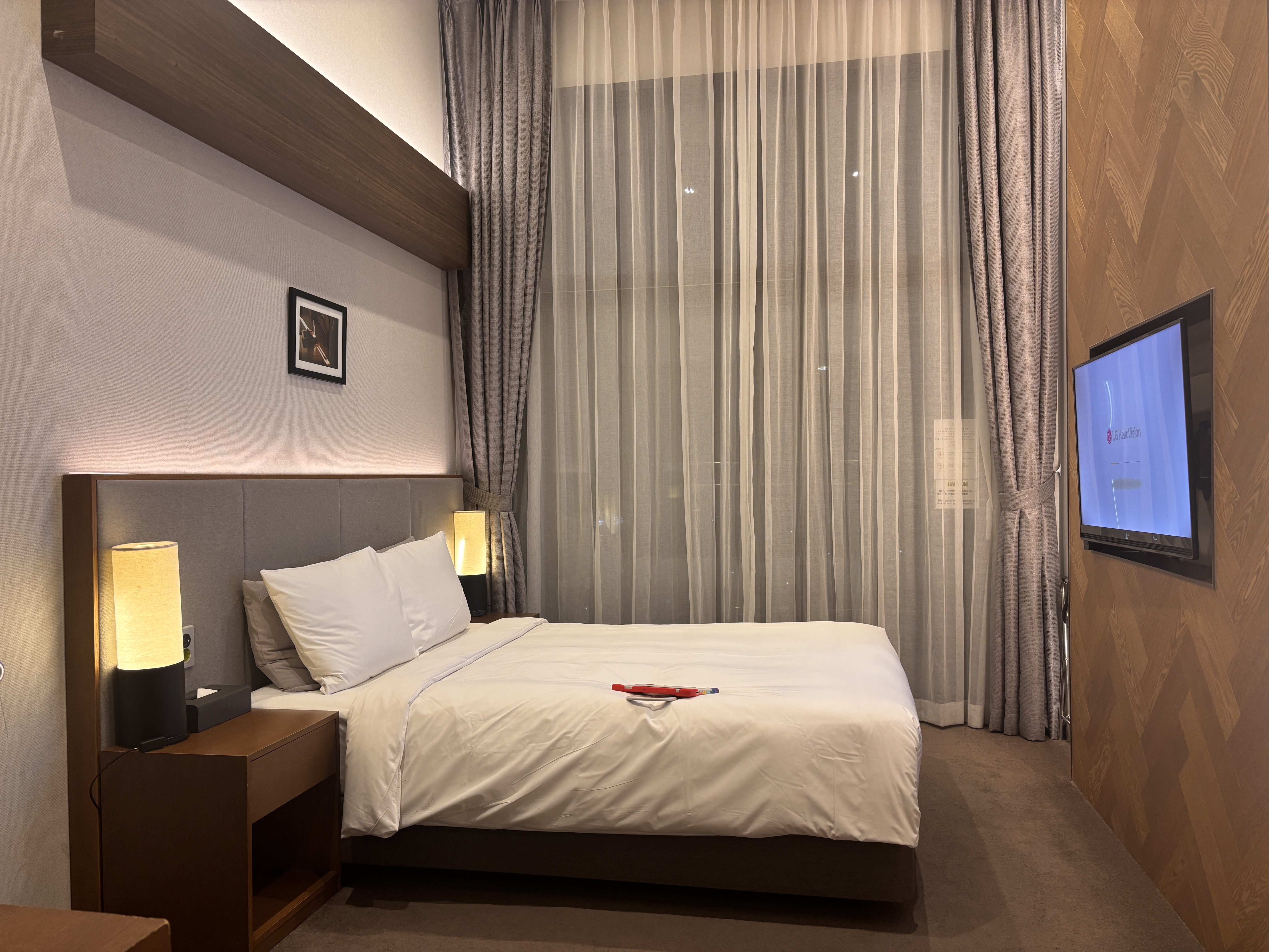침대는 푹신푹신하고 침구류도 깨끗해서 기분 좋다. 전체적으로 분위기가 세련되고 고급져서 평창 가성비 숙초로 역시 최고다.